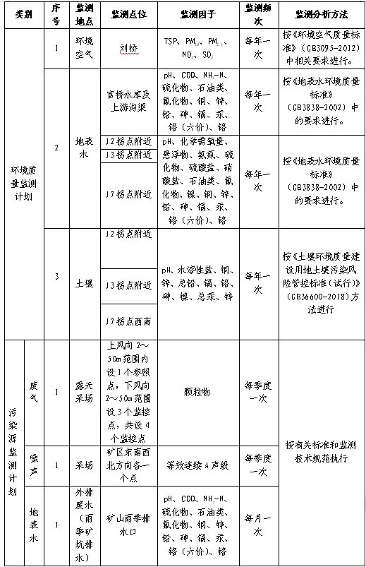 (6)招標(biāo)范圍及內(nèi)容:對興天礦業(yè)諭興礦進行環(huán)境監(jiān)測和檢測,包括但不限于土壤、地下水、廢水、廢氣、噪聲等污染源進行監(jiān)測和檢測,每月出具監(jiān)測和檢測報告。監(jiān)測和檢測報告需滿足各級主管單位、國家法律法規(guī)、行業(yè)檢測標(biāo)準(zhǔn)、《滁州市興天礦業(yè)有限公司安徽省天長市諭興地區(qū)建筑用玄武巖礦年產(chǎn) 800 萬噸露天采礦項目環(huán)境影響報告表》中所涉及范圍等要求,保證審批順利通過。