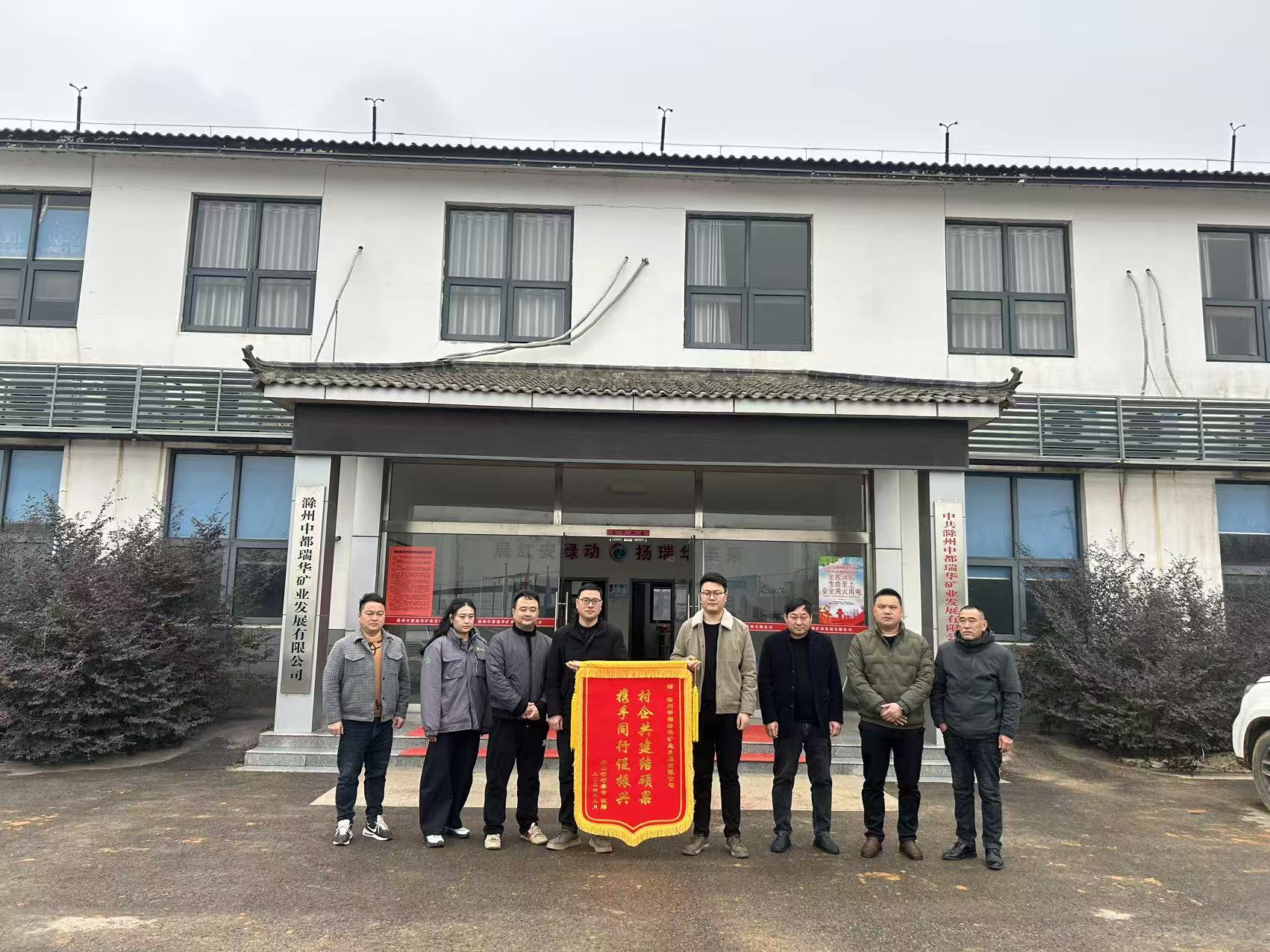 一面錦旗,兩行贈語,承載著長達十余年的深切情誼與扎實成果。2月10日,大廟鎮(zhèn)政府攜林山村村委會專程將繡有“村企共建結(jié)碩果,攜手同行促振興”的錦旗送至中都瑞華礦業(yè),誠摯感謝企業(yè)自2015年建礦以來,在促進就業(yè)、改善民生、保護環(huán)境等方面做出的持續(xù)貢獻。
